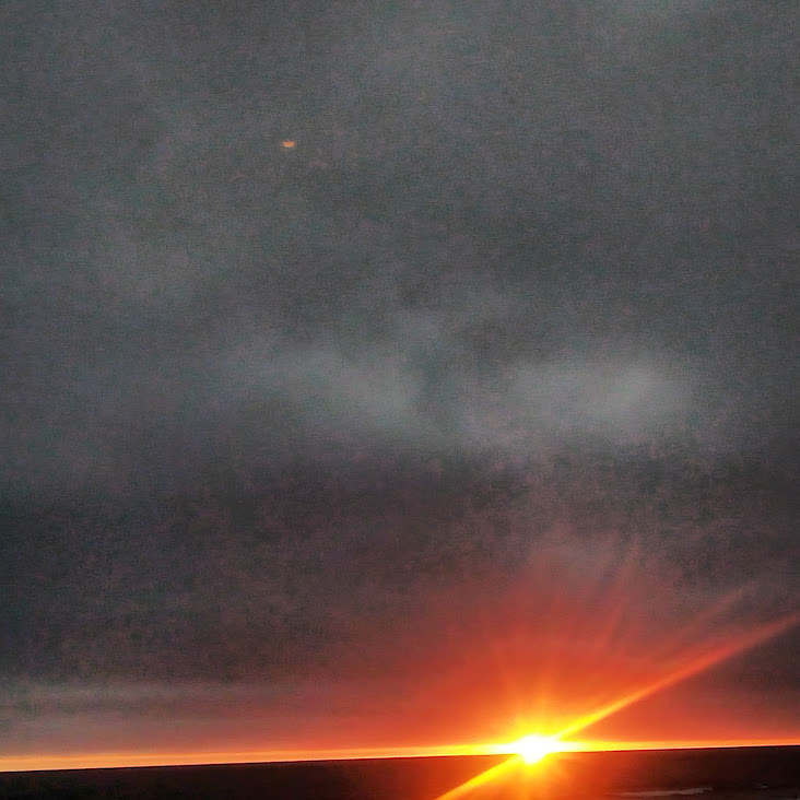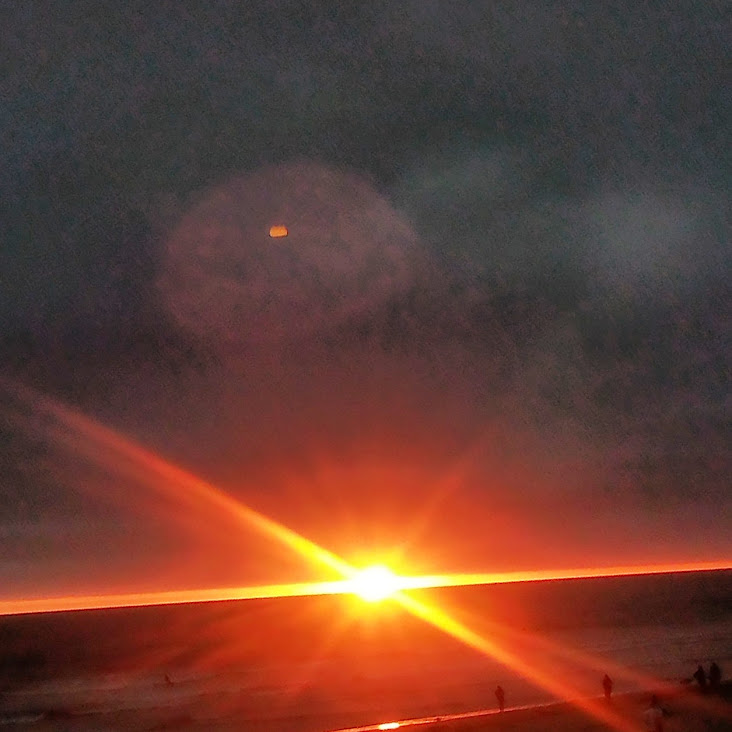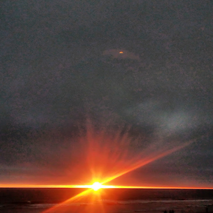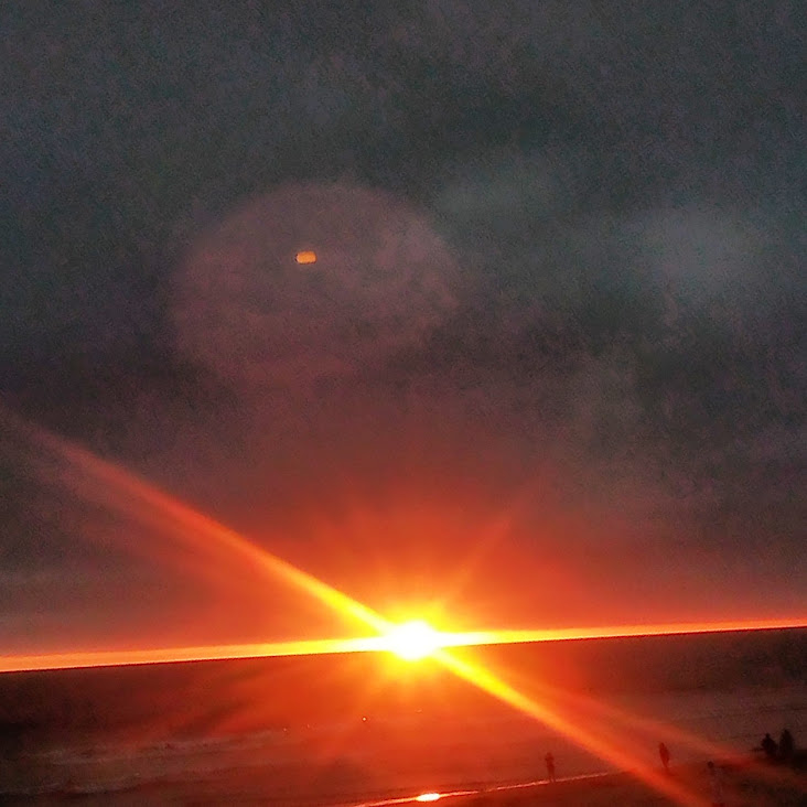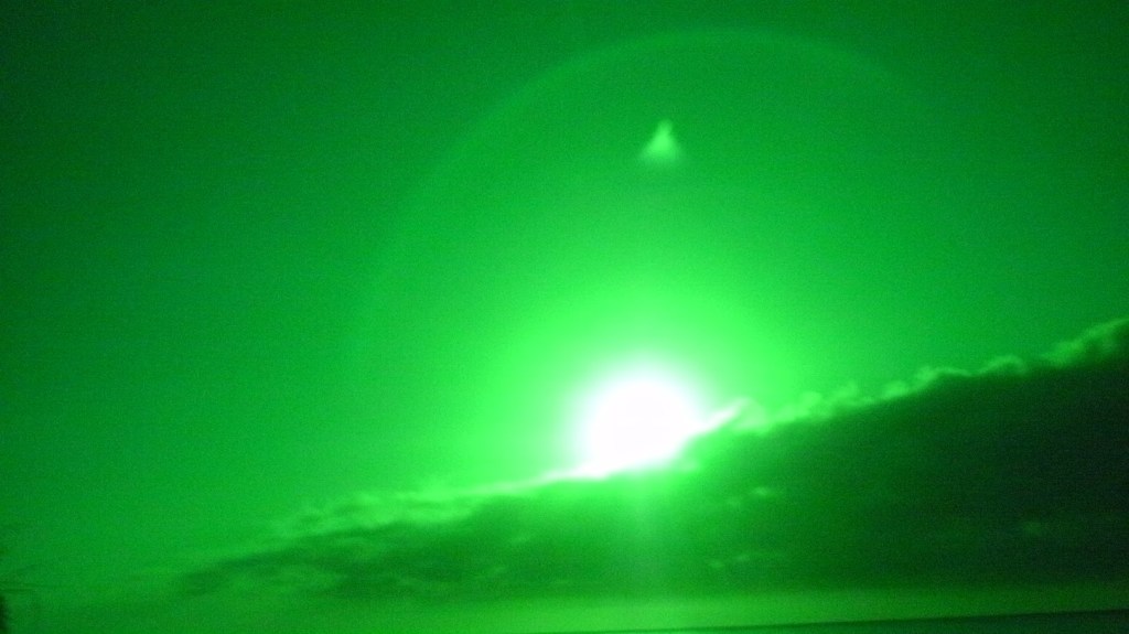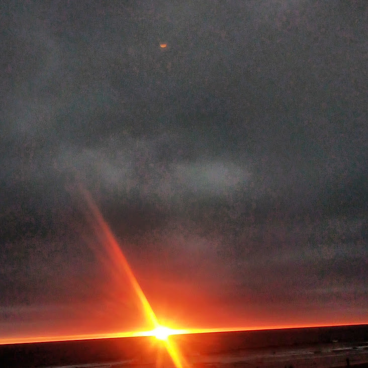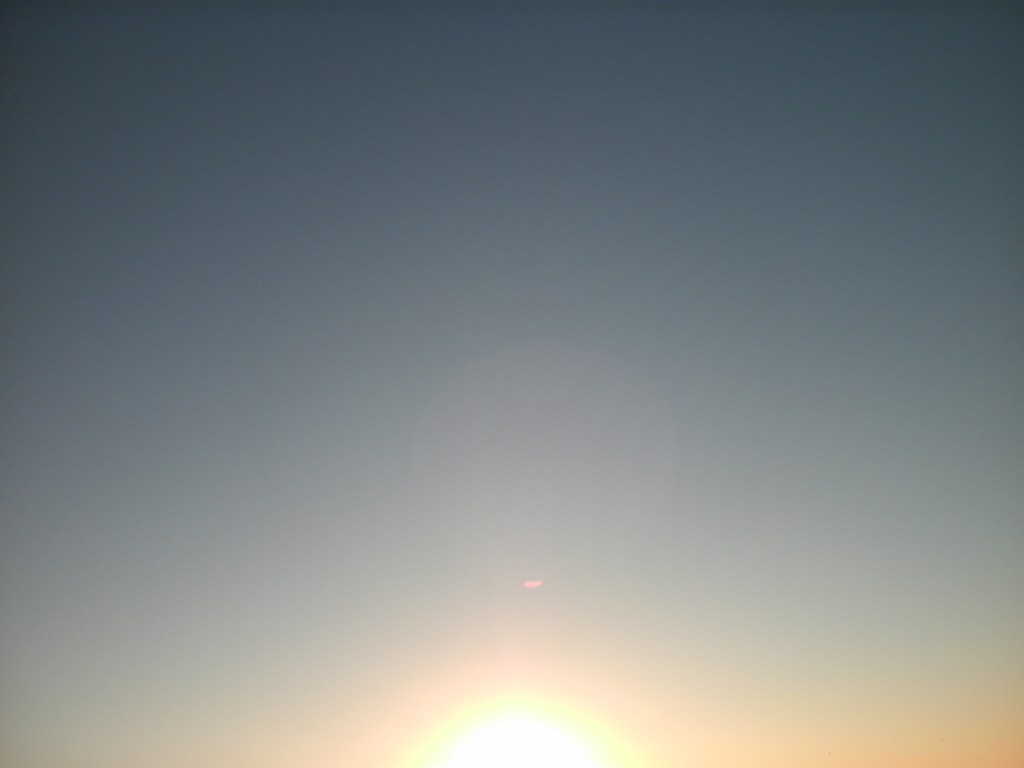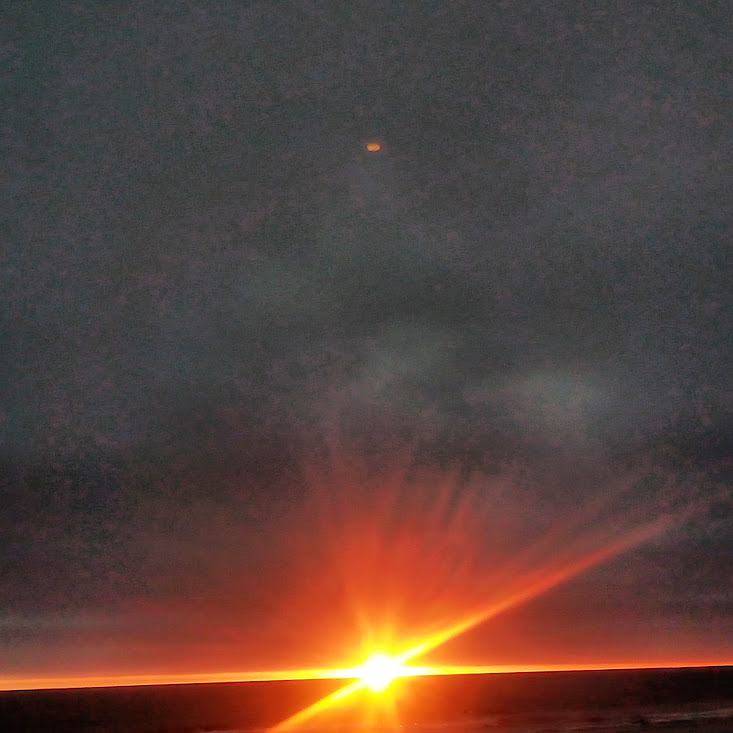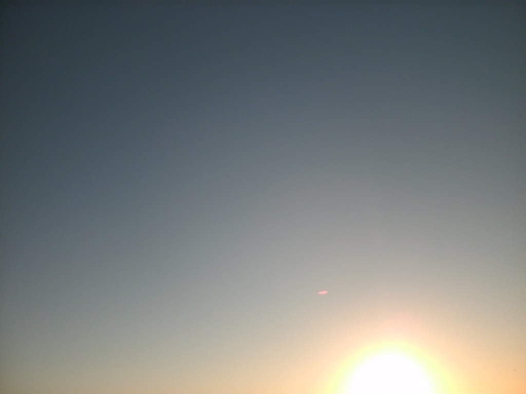 This night the sun set at 4:45 pm, that is the exact time of this picture. So as the sun should be below that grey cloud line in the horizon be that as it may for this might be a residual reflection, yet there is a reflection way above and not similar to the lower one, looks like from an outside source. Well have to run you know how it goes there always out to get you.