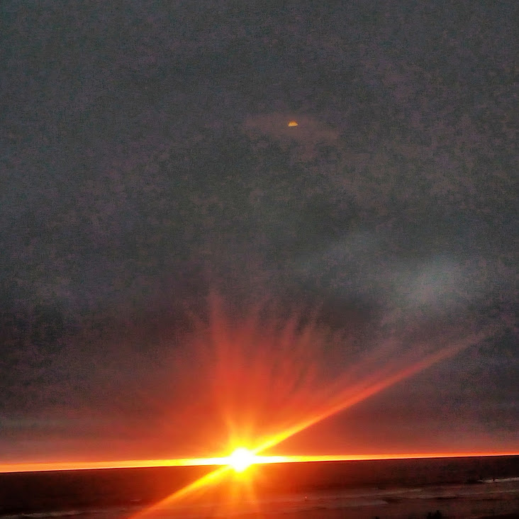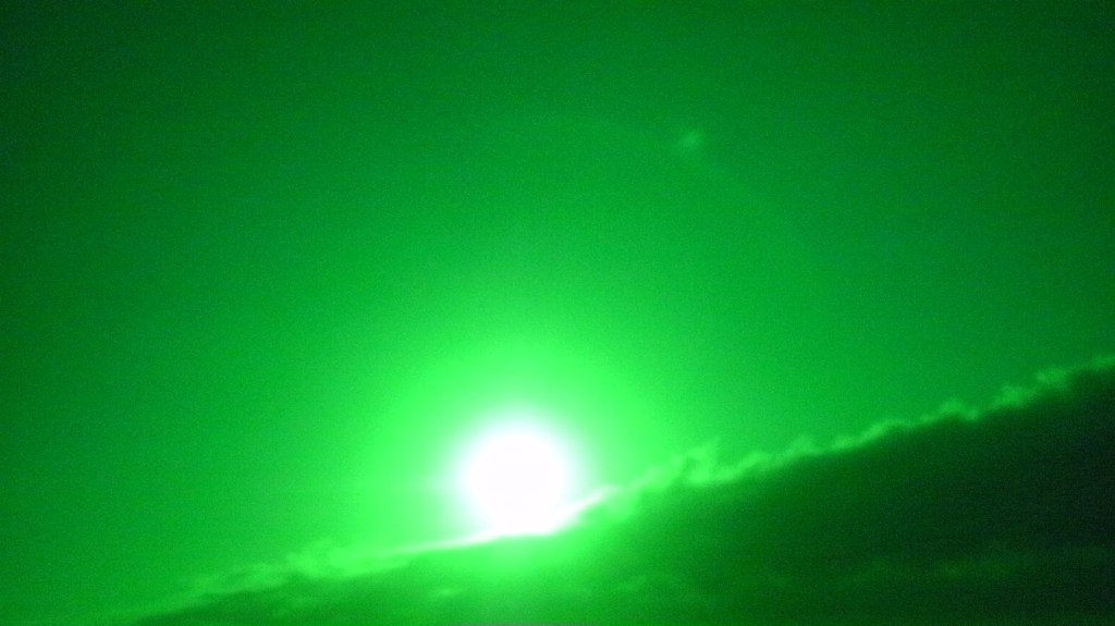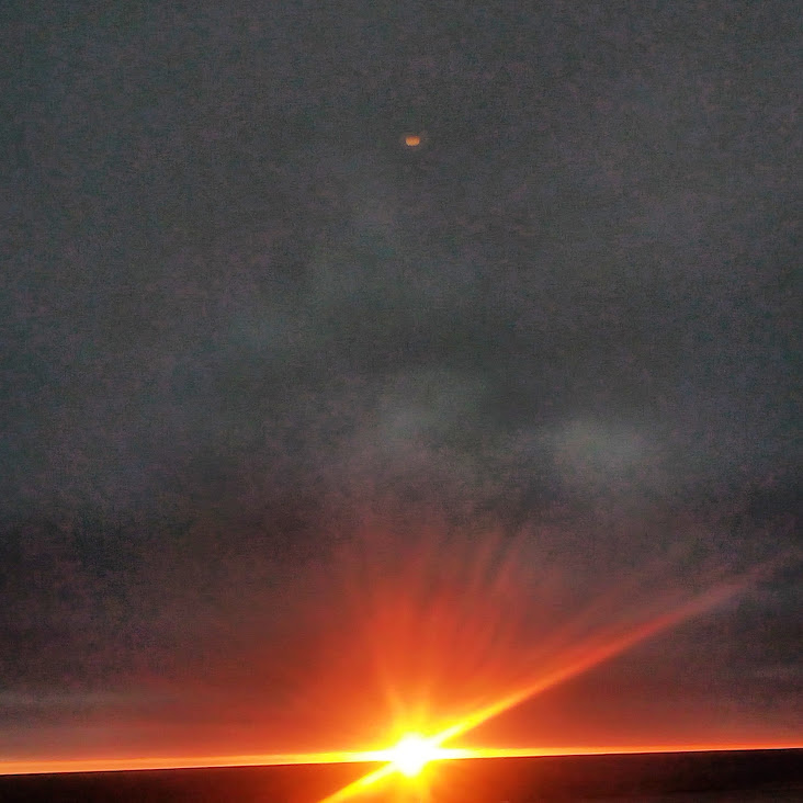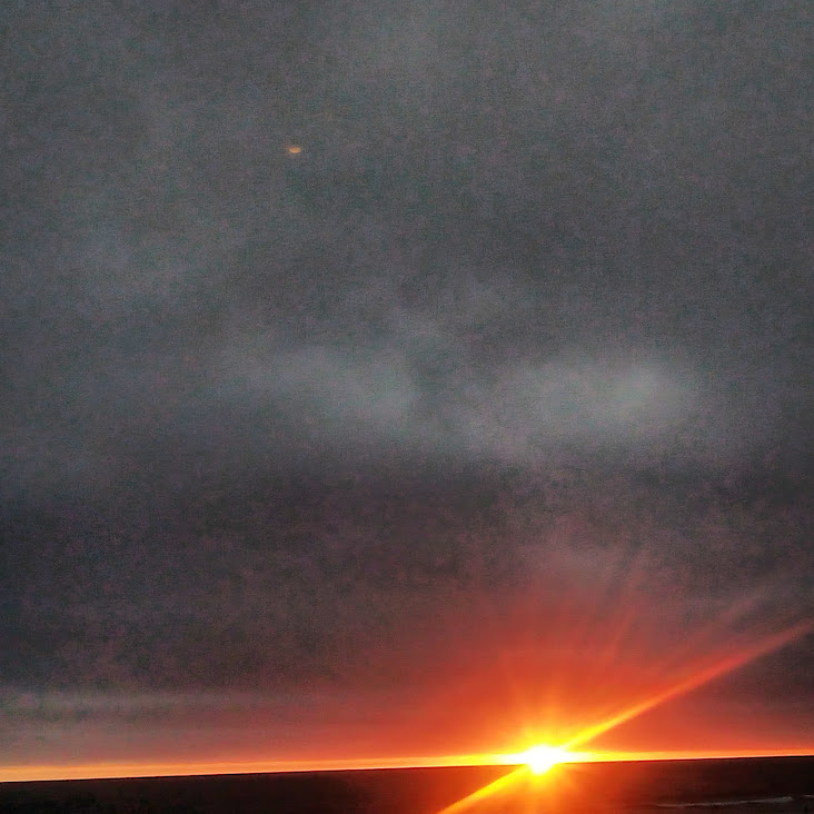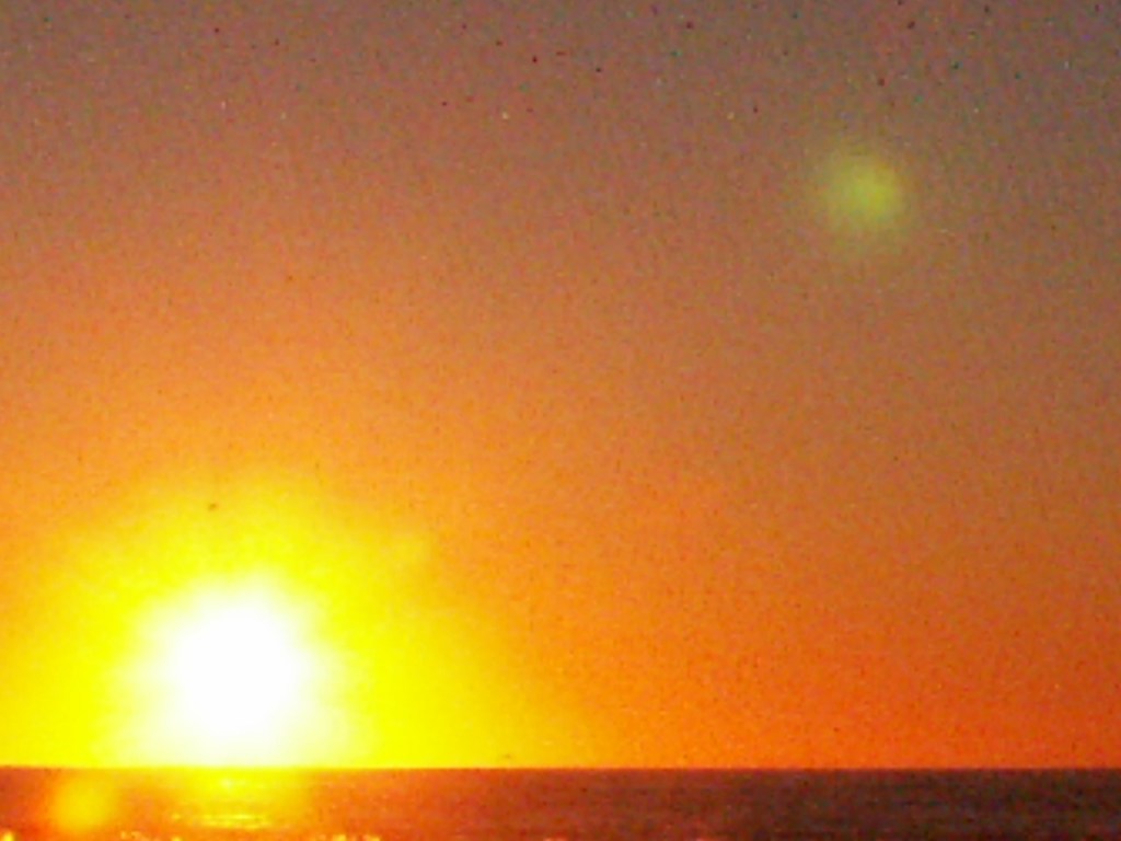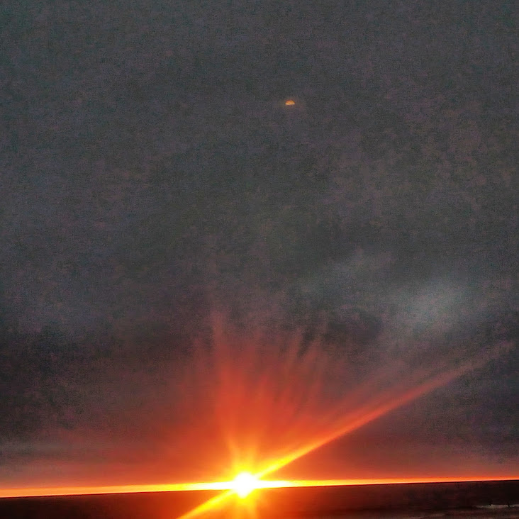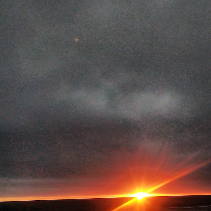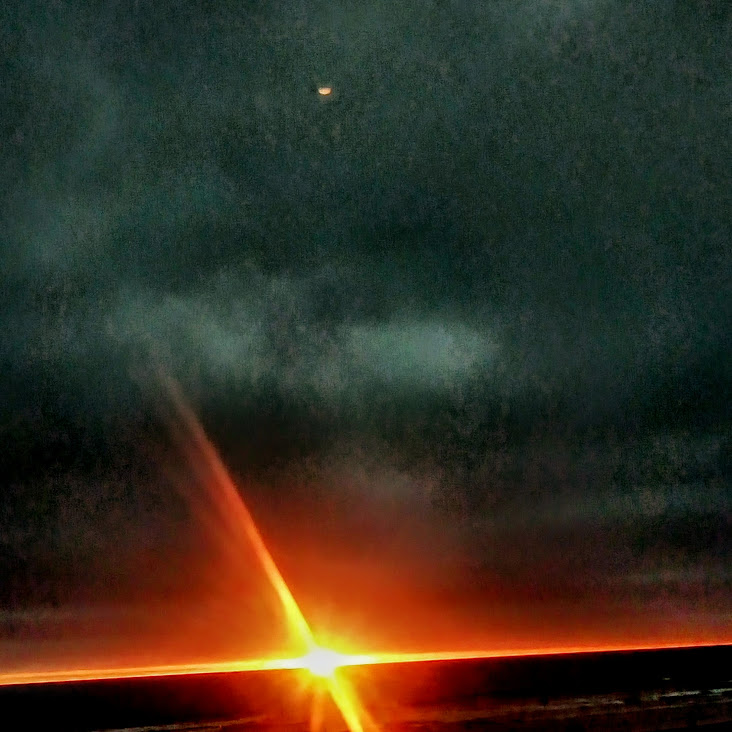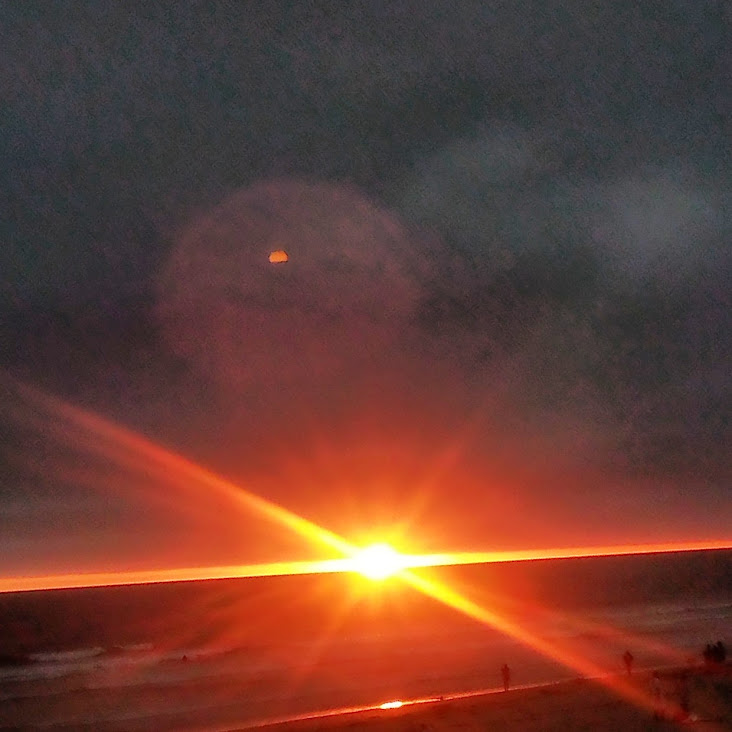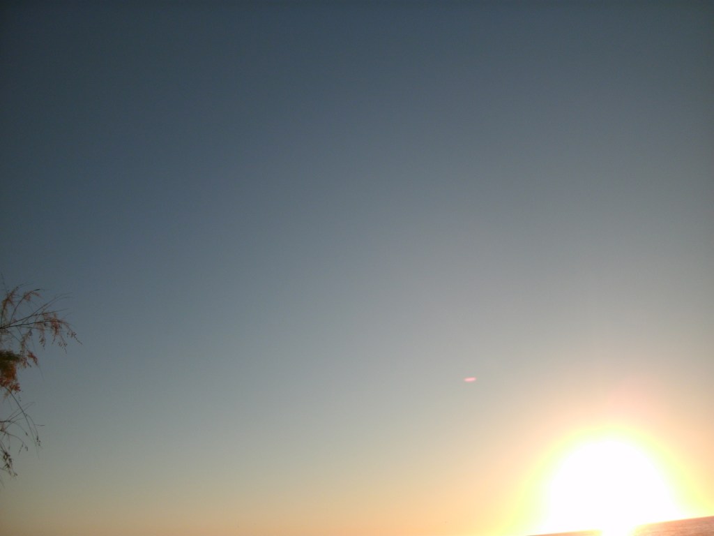 This night the sun set at 4:45 pm, that is the exact time of this picture. So as the sun should be below that grey cloud line in the horizon be that as it may for this might be a residual reflection, yet there is a reflection way above and not similar to the lower one, looks like from an outside source. Well have to run you know how it goes there always out to get you.