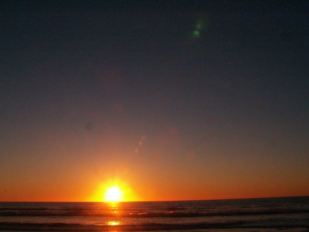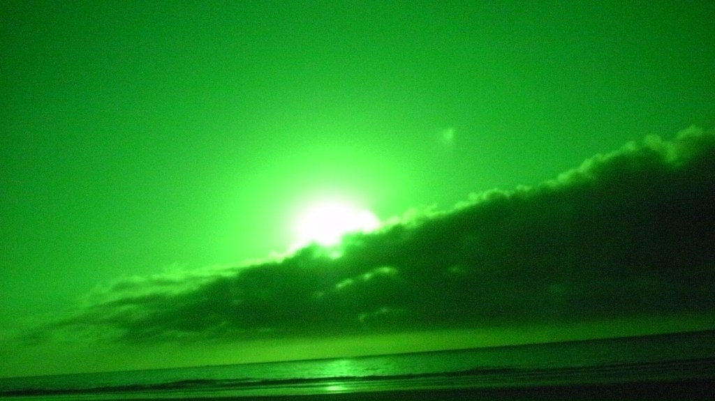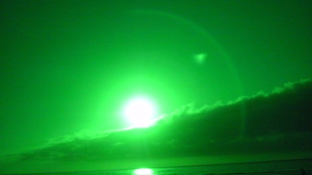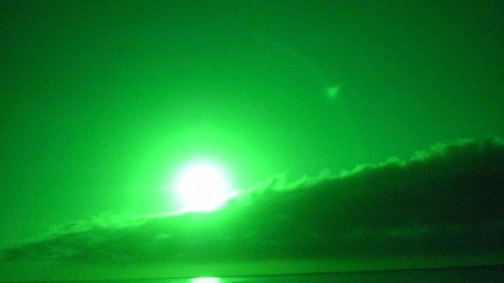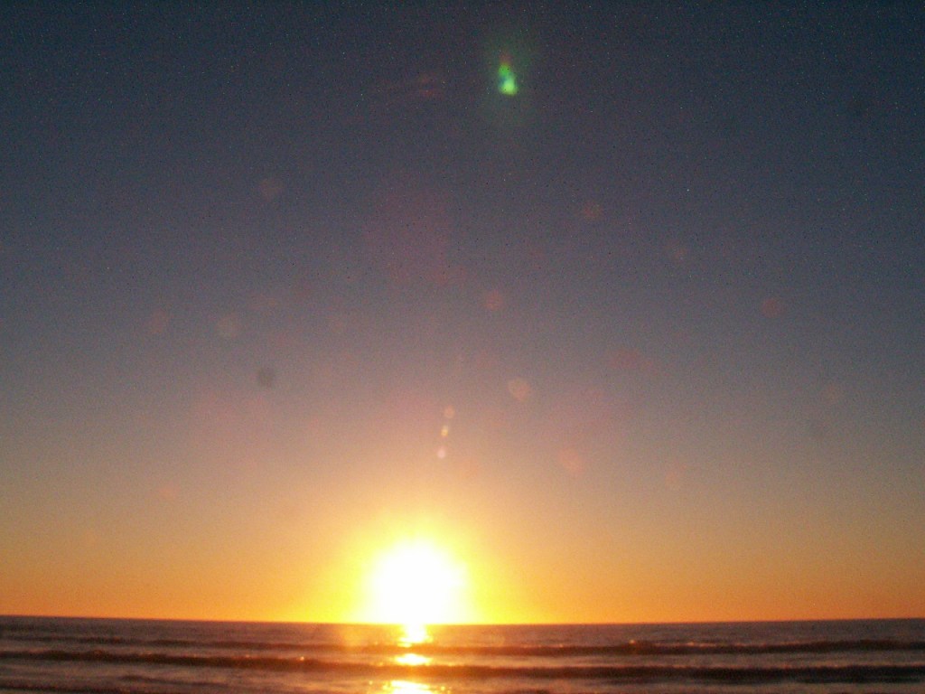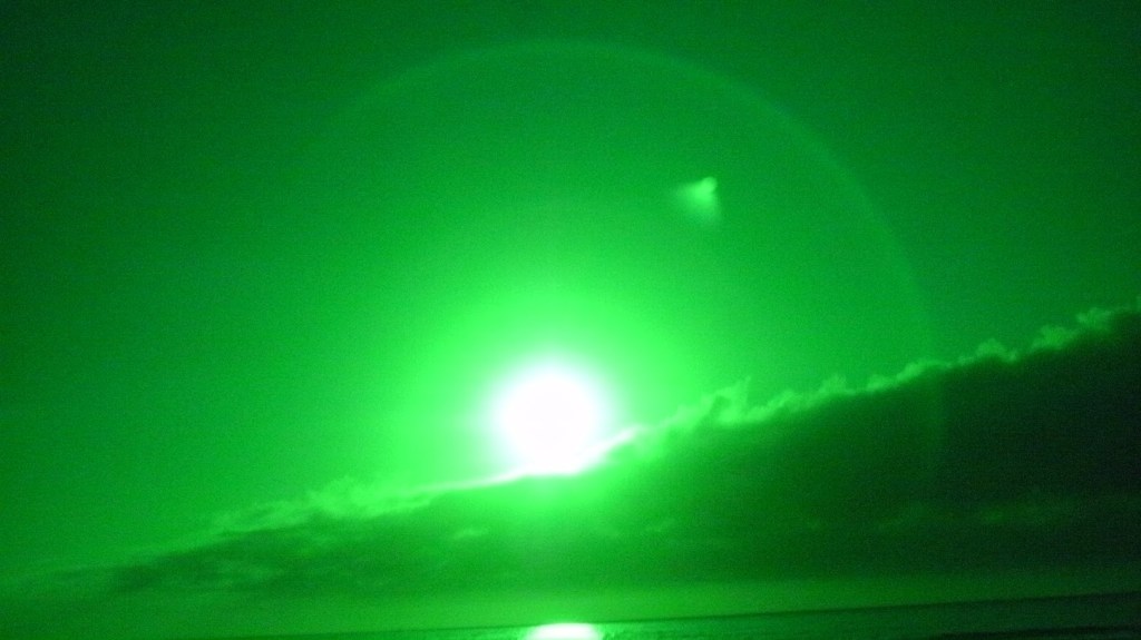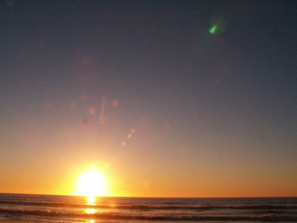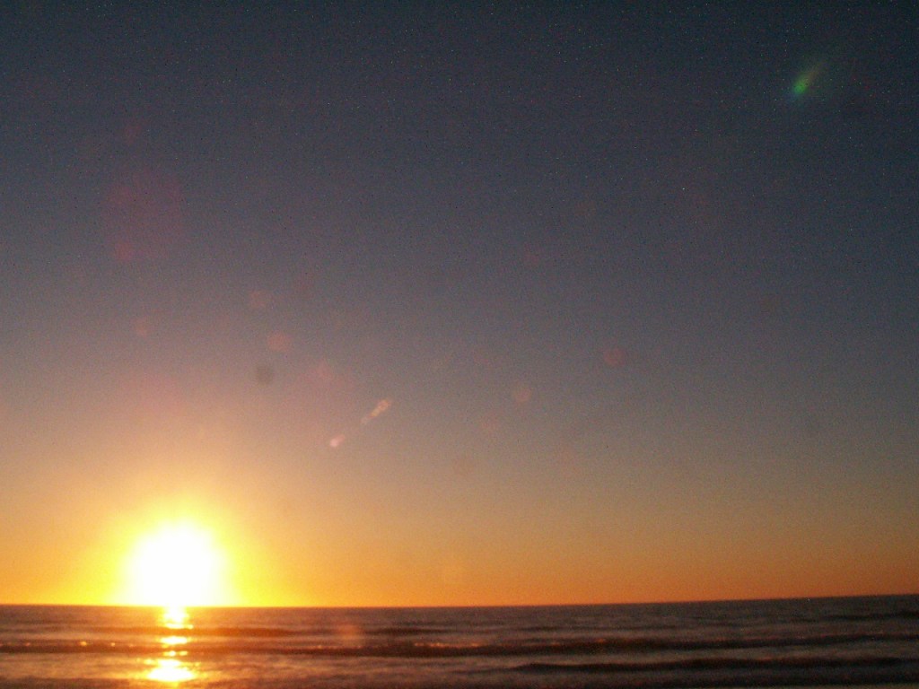 This night the sun set at 4:45 pm, that is the exact time of this picture. So as the sun should be below that grey cloud line in the horizon be that as it may for this might be a residual reflection, yet there is a reflection way above and not similar to the lower one, looks like from an outside source. Well have to run you know how it goes there always out to get you.