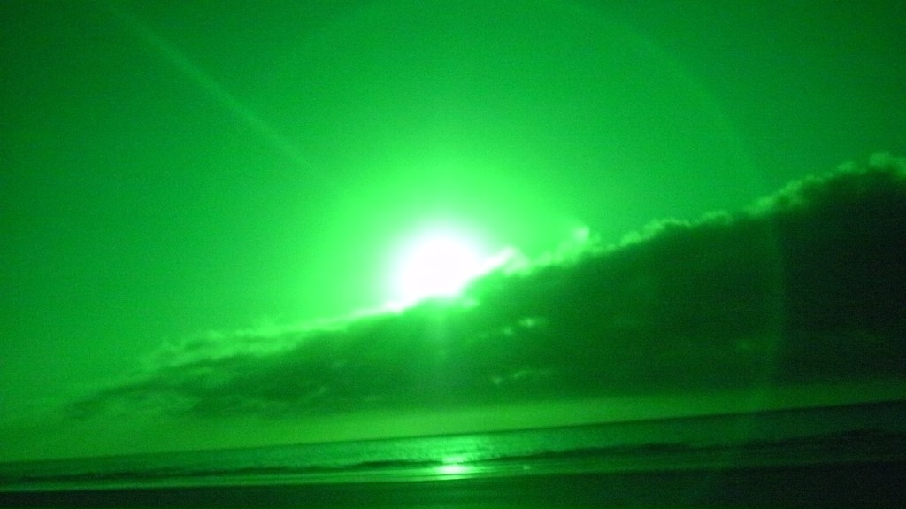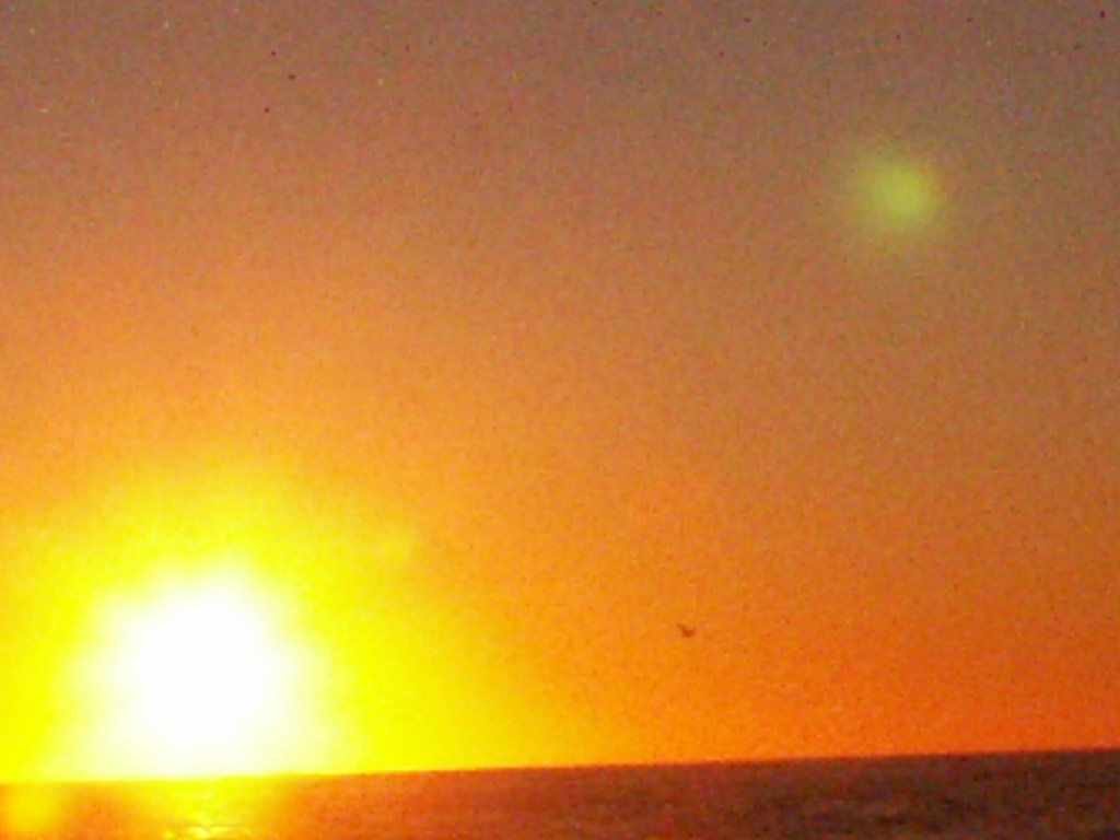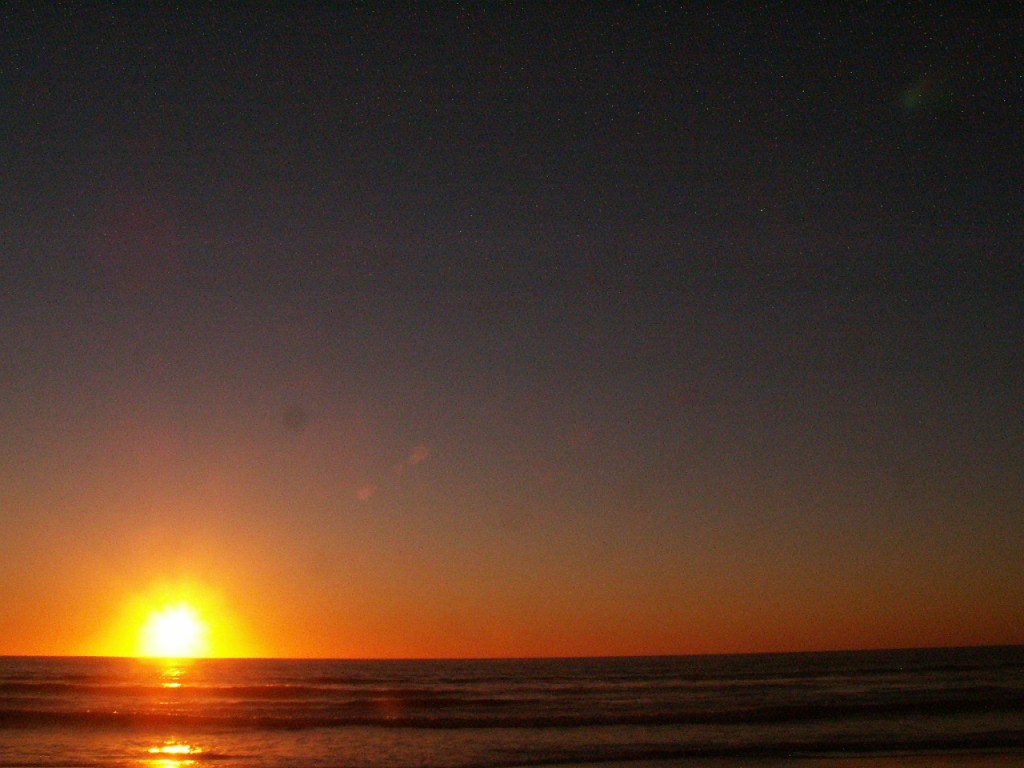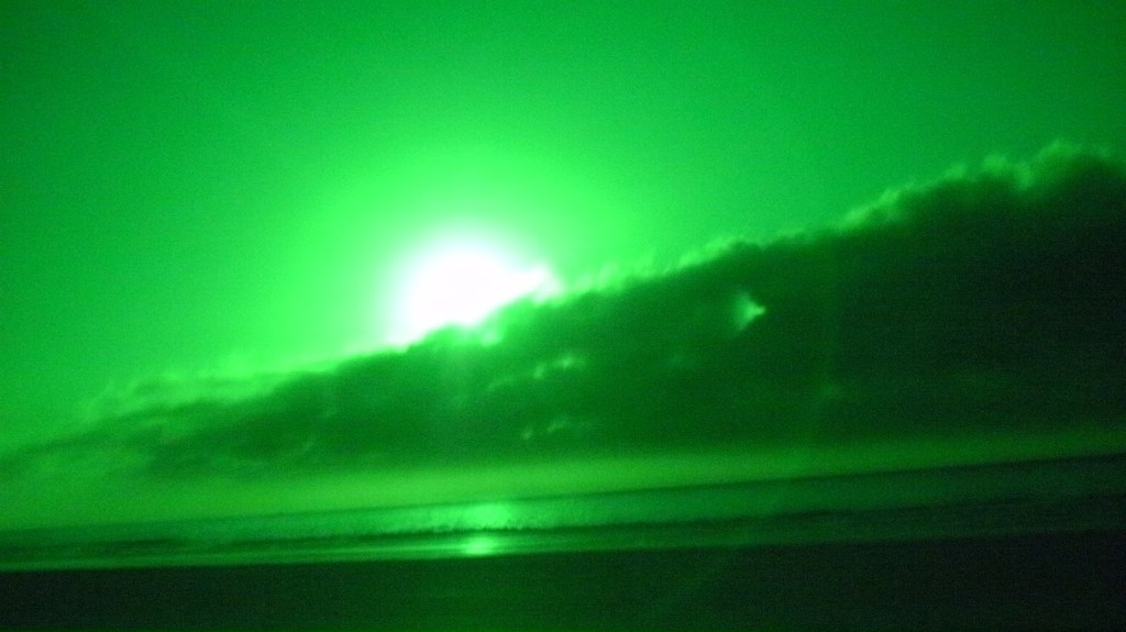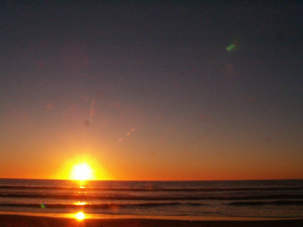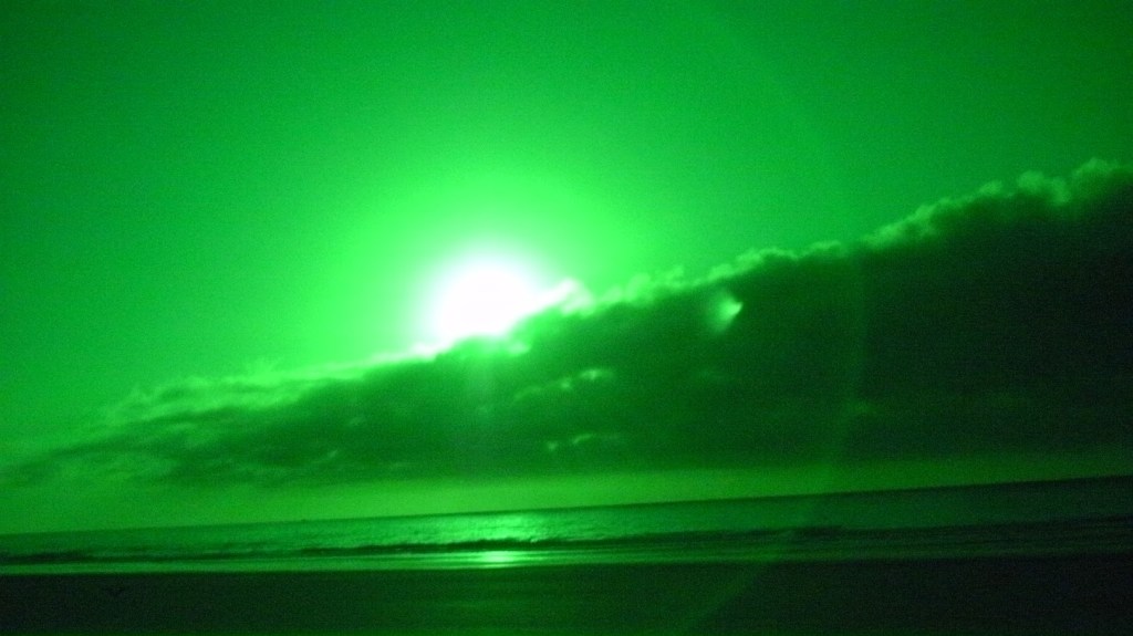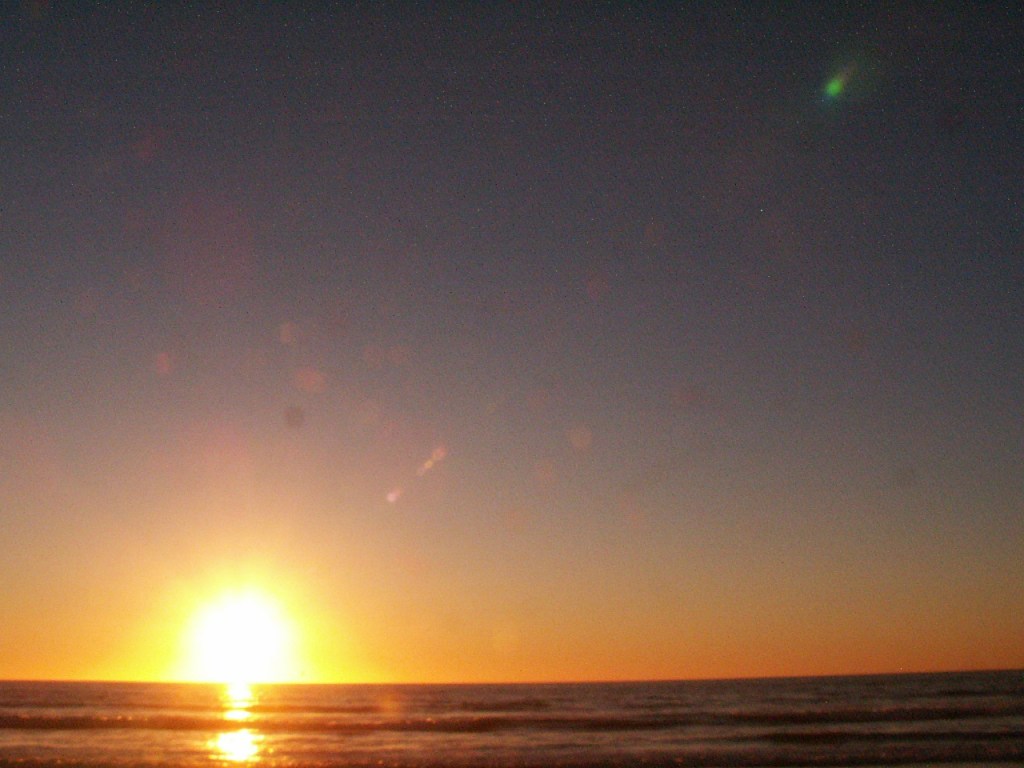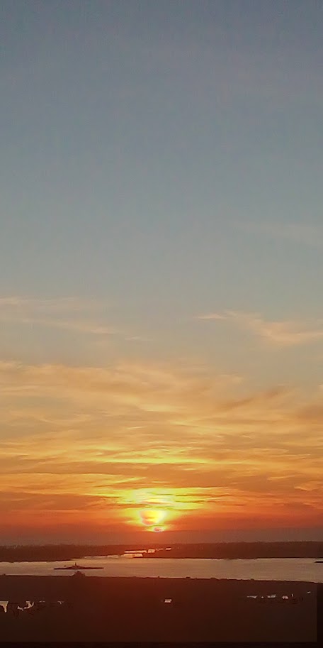 This night the sun set at 4:45 pm, that is the exact time of this picture. So as the sun should be below that grey cloud line in the horizon be that as it may for this might be a residual reflection, yet there is a reflection way above and not similar to the lower one, looks like from an outside source. Well have to run you know how it goes there always out to get you.