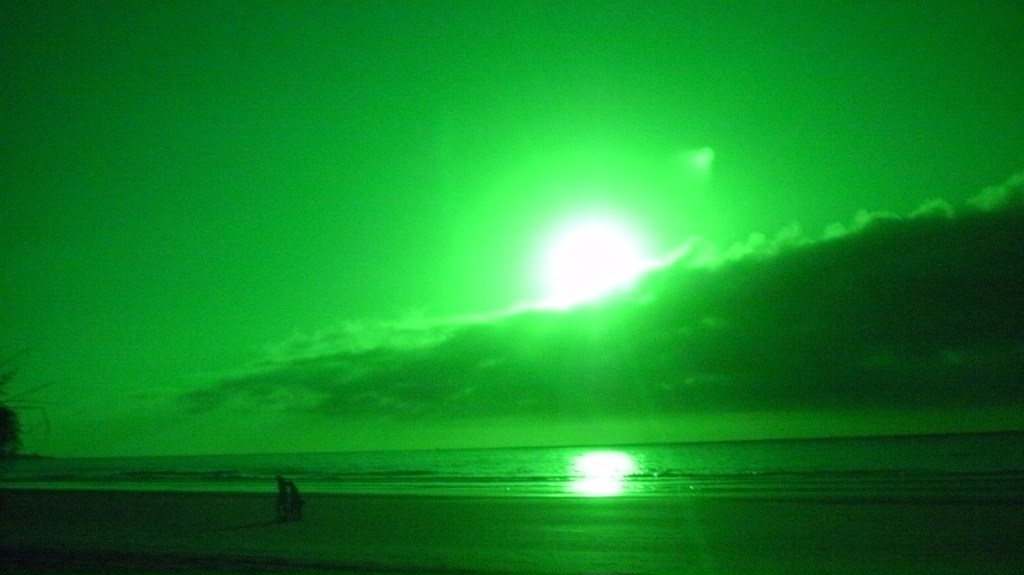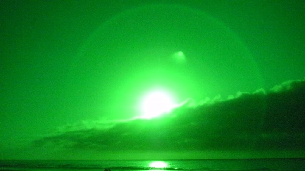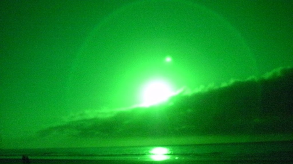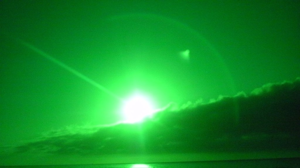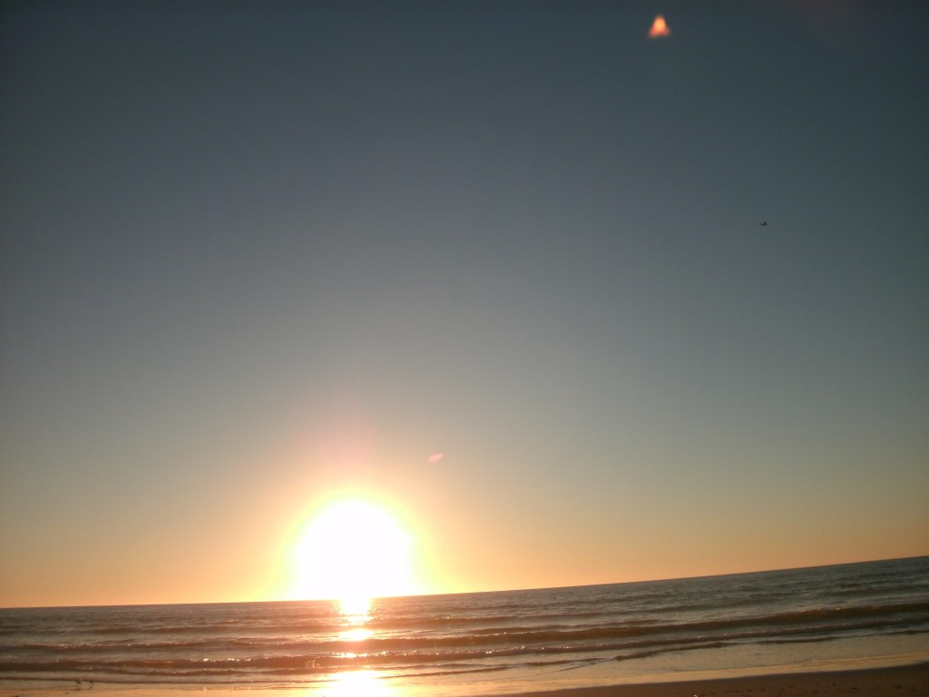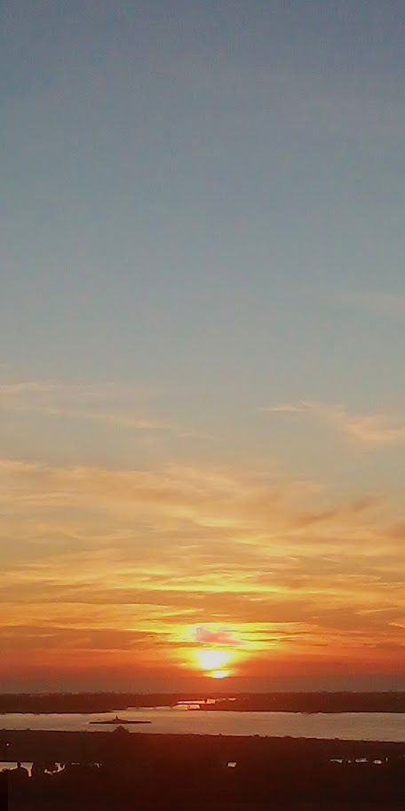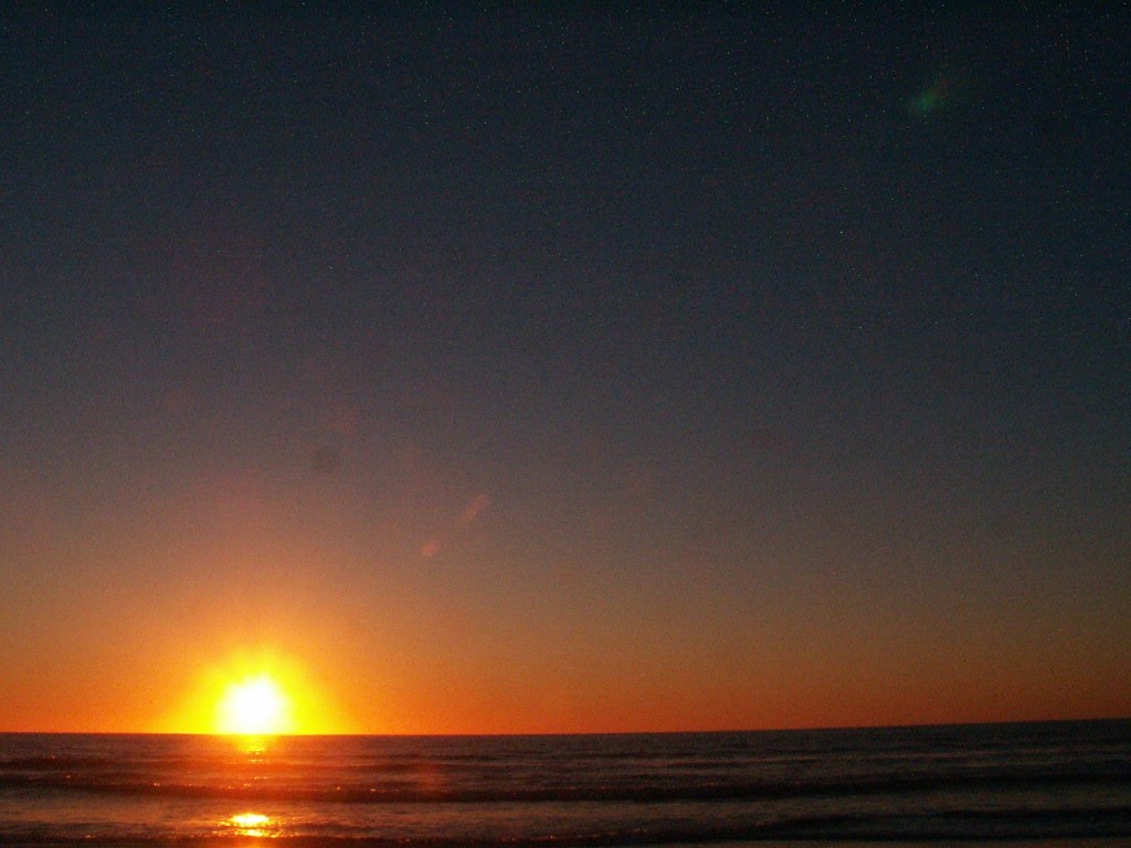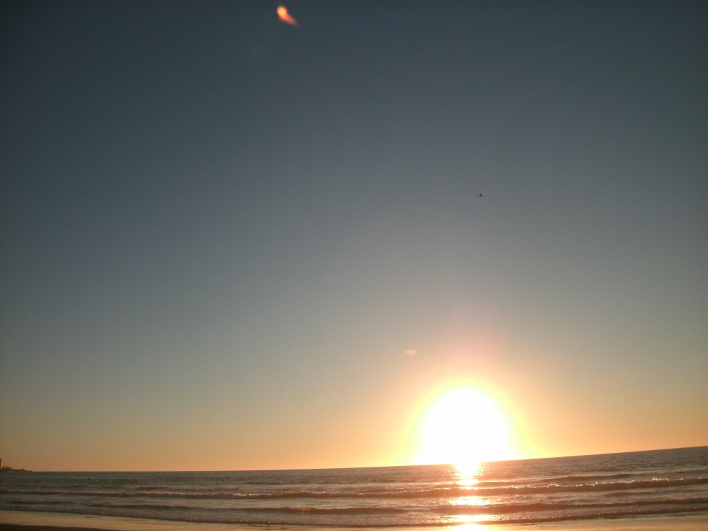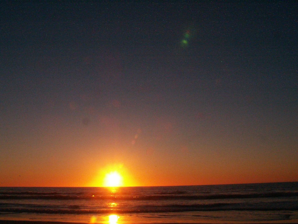This night the sun set at 4:45 pm, that is the exact time of this picture. So as the sun should be below that grey cloud line in the horizon be that as it may for this might be a residual reflection, yet there is a reflection way above and not similar to the lower one, looks like from an outside source. Well have to run you know how it goes there always out to get you.